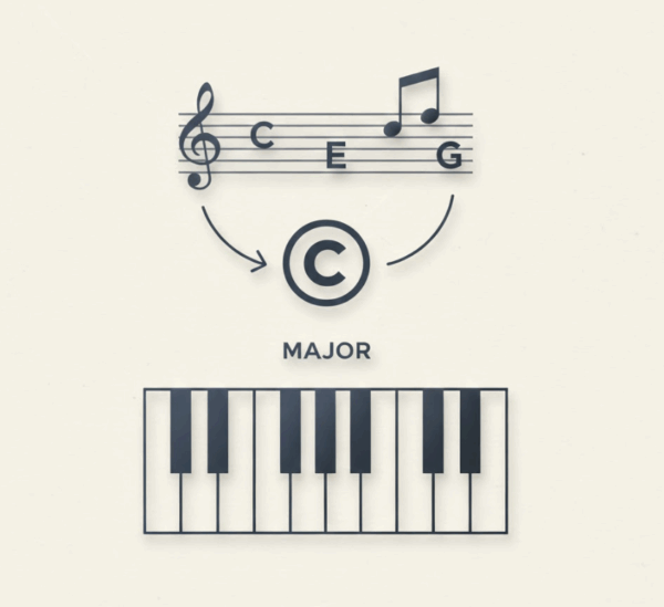 この方法は、ダイアトニックコード(スケール)の仕組みを応用している。曲にはそのキーごとに「メインで使う7つの音のセット」が決まっていて、メロディの多くはそのダイアトニックコード内の音で作られている。だから、バラバラの音を並び直せば、自然とキーの正体である「音の階段」が判別しやすい。